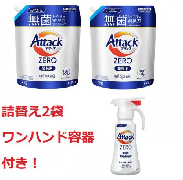 花王 アタックZERO 業務用 2kg x2袋+ワンハンドつめかえ容器付き