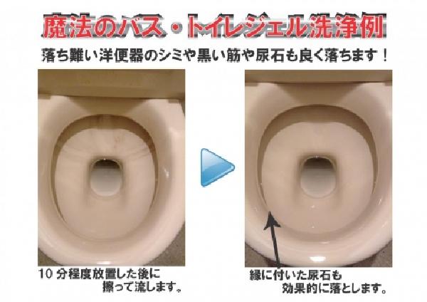 落とし難い様式トイレの黒い筋や尿石によく反応して落とします。お風呂の黒ずみにも効果的です。