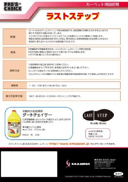 SMS カーペット用回収剤 ラストステップ 3.8L