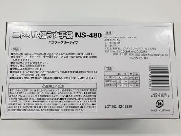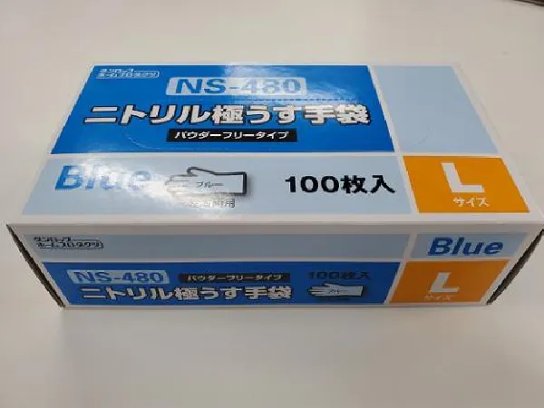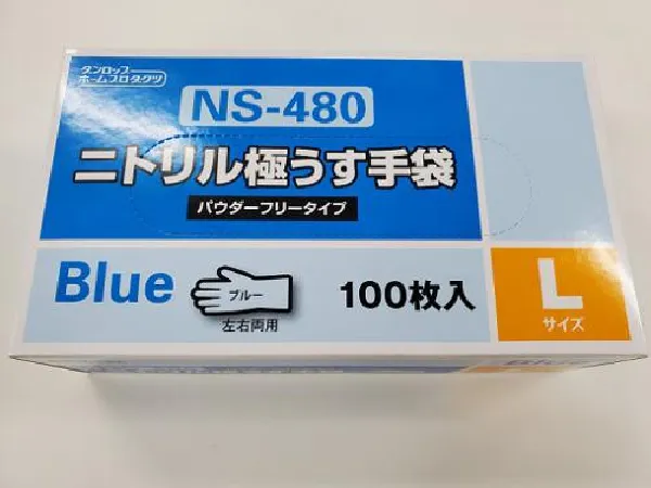 ダンロップ 粉なし ニトリル極うす手袋 ブルー NS-480 100枚入 Lサイズ x20箱入