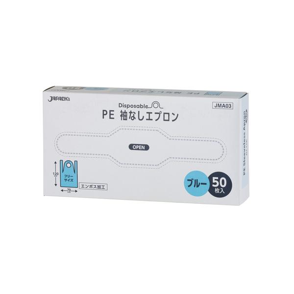 ジャパックス 衛生防具 PE袖なしエプロン ブルー JMA03 50枚入x20箱