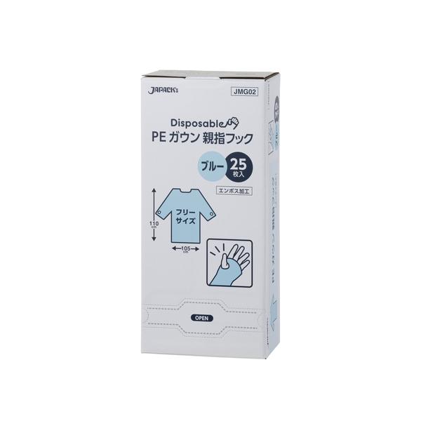 ジャパックス 衛生防具 PEガウン 親指フックタイプ ブルー JMG02 25枚x12箱