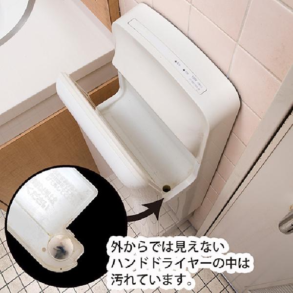 ・ハンドドライヤーの排水管は意外と汚れています。普通のクリーナーでは排水管に入らなかったり、奥まで掃除ができなかったため、今回専用のクリーナーを開発しました。