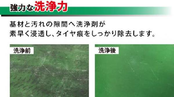 タイヤ痕の洗浄の場合には、青パッド等を使用すると効果的です。