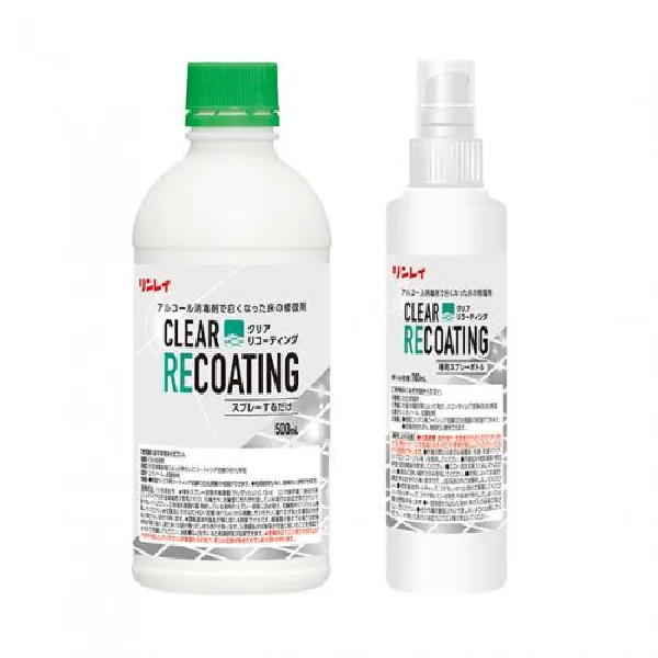 クリア リコーティング はアルコール消毒剤でワックスの表面が白くなる現象(白化)を修復するスプレー剤です。
