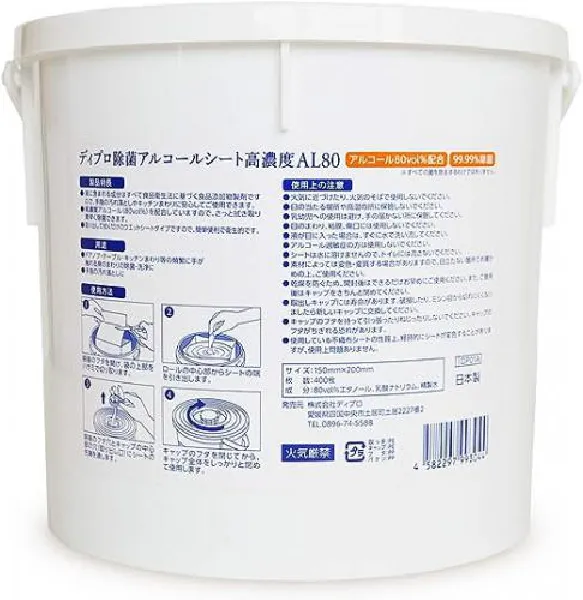 小津産業 高濃度アルコールシートAL80 バケツ容器入り 400枚入x4個