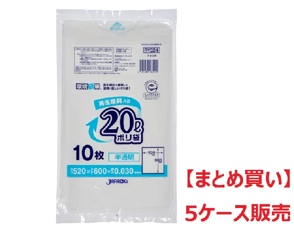 【まとめ買い】ジャパックス 環境袋策 20L RYC24 半透明 10枚×60冊入【5ケース】