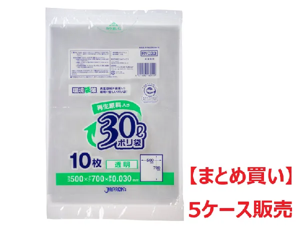 【まとめ買い】ジャパックス 環境袋策 30L RYC33 透明 10枚×60冊入【5ケース】