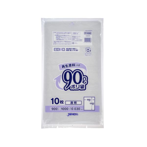 ジャパックス 環境袋策 90L RYM98 透明 10枚×30冊入