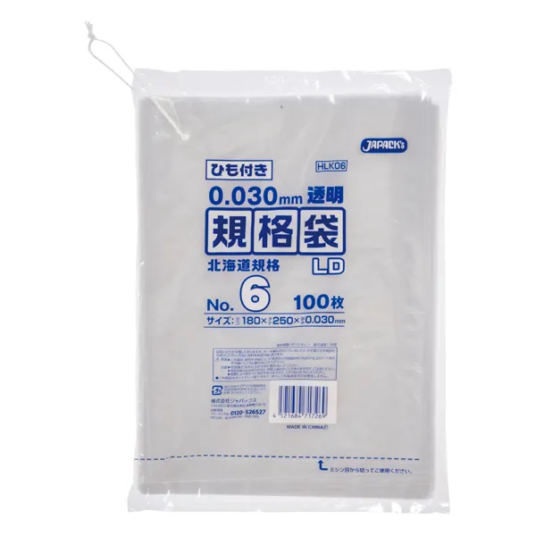 ジャパックス LD規格袋 北海道 HLK06 透明 100枚x10冊×8箱入