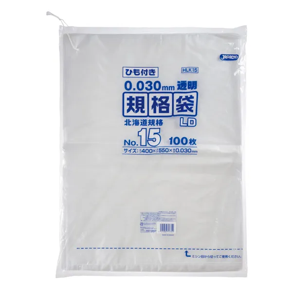 ジャパックス LD規格袋 北海道 HLK15 透明 100枚x5冊×3箱入