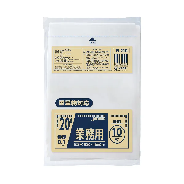 ジャパックス 重量物対応 20L PL210 透明 0.1m厚 10枚×20冊入