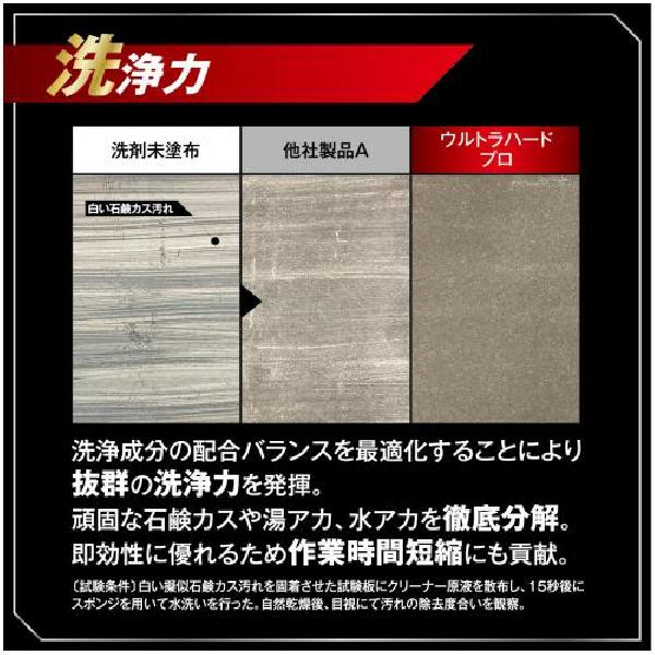 ウルトラハードプロ 超強力バスクリーナーは、温浴施設、ハウスクリーニングなどで、蓄積してしまった湯アカ、水アカ、石鹸カスなどの浴室汚れに素早く浸透し、手早く効率的なバスルーム清掃が行えます。