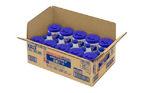 「セイフキープ次亜シート」1本に「セイフキープ次亜シート専用液」1本を全量注いで使用する環境清拭シートです。
