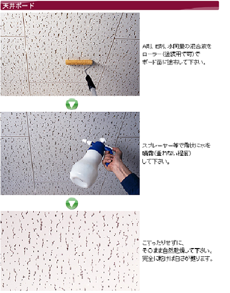●A剤1:B剤1:水1の割合で混合して下さい。