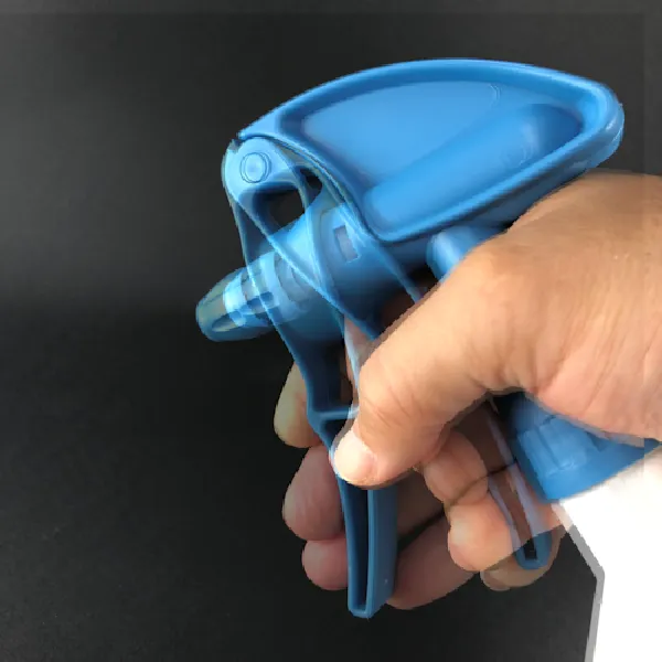 装備:ダブルアクション構造(トリガーを握って離したときにも連続して噴射できます)、ボトル安定用・保護ベースリング、液量確認スリット