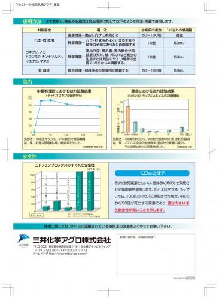 ベルミトール水性乳剤・アクアは幅広い衛生害虫に有効な、人と環境に優しい、水ベースで低粘性タイプのエトフェンプロックス製剤です。