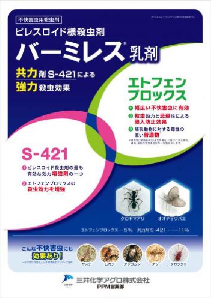 バーミレス乳剤は共力剤S-421により効力を増強した、幅広い不快害虫に有効なエトフェンプロックス製剤です
