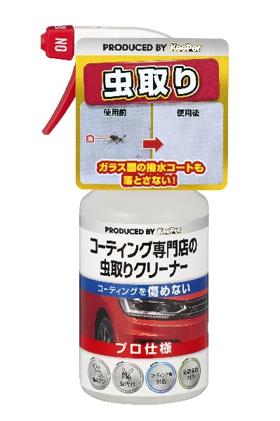 一般的な虫取り剤は、虫への分解能力が高い洗剤を選択いているため、虫だけではなくコーティングに対する分解能力も高いです。