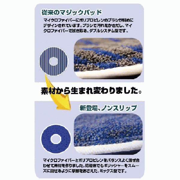防滑床でもポリッシャーをスムーズに回せるように摩擦をおさえた、ミックス型です。