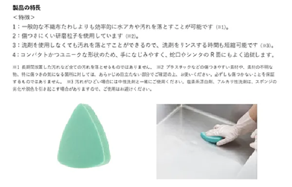 一般的な不織布たわしよりも効果的に水アカや汚れを落とすことが可能です。