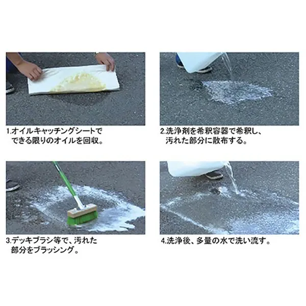 コンクリート床・アスファルト・作業着・流出油分散処理。
