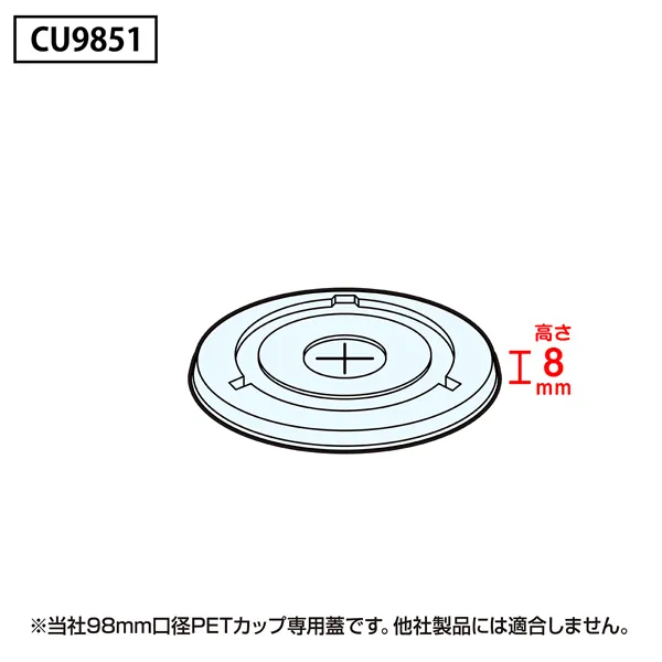● 口径98mm PETカップ(プラカップ)専用 ストロー穴付きの共通フラット蓋(平型蓋)です。高さ約8mm。